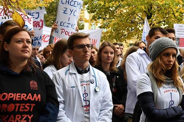 Според данните на полското Министерство на здравеопазването около 3500 медици в болничната помощ са отказали да подпишат договорите, позволяващи работната седмица да е повече от 48 часа. Според протестиращите обаче броят на лекарите, отказали се от тези договори, е по-скоро около 5000. Протестиращите настояват за диалог с министъра на здравеопазването Константи Радживил и са поискали бързо и значително увеличаване на средствата за здравеопазване.