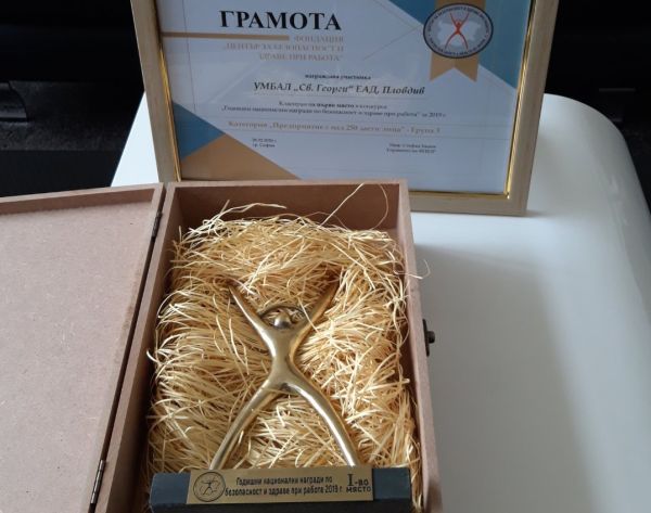 На тържествената церемония в столицата от името на изпълнителния директор на УМБАЛ „Свети Георги” проф. д-р Карен Джамбазов наградата получи инж. Стефан Калфов, инспектор „Здраве и безопасност при работа” в уноверситетската болница.