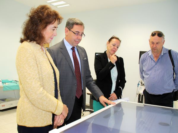 В едната лаборатория по проекта делегацията се запозна с изградената Система за клетъчно сортиране в Катедрата по медицинска микробиология и имунология „Проф. д-р Елисей Янев", използвана за изследване на минимална резидуална болест при деца с остра лимфобластна левкемия.