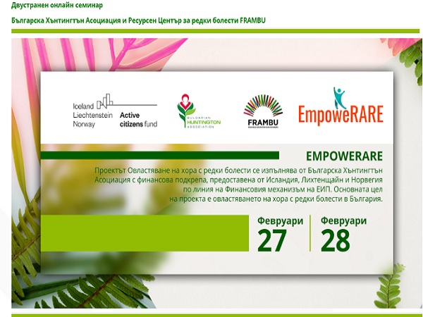 Той е организиран от Българската Хънтингтън Асоциация и норвежкия Ресурсен Център за хора с редки болести FRAMBU, който ще представи практики за подкрепа на семейства с редки болести в Норвегия и актуална информация относно предизвикателствата пред пациентите с редки болести и социалната система в България.